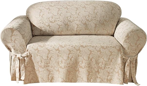 Amazon Com Surefit Home Decor Scroll Damask Box Cushion Loveseat One Piece Slipcover Relaxed Fit Cotton Polyester Machine Washable Champagne Color Furniture Decor