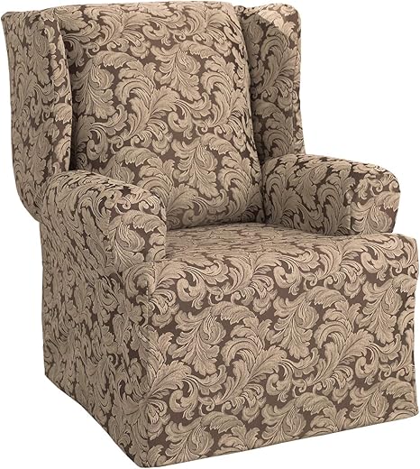 Amazon Com Surefit Scroll Damask Box Cushion Wing Chair One Piece Slipcover Relaxed Fit Cotton Polyester Machine Washable Brown Home Kitchen