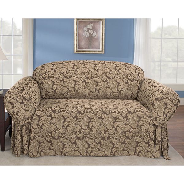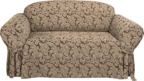 Amazon Com Surefit Home Decor Scroll Damask Box Cushion Loveseat One Piece Slipcover Relaxed Fit Cotton Polyester Machine Washable Brown Home Kitchen