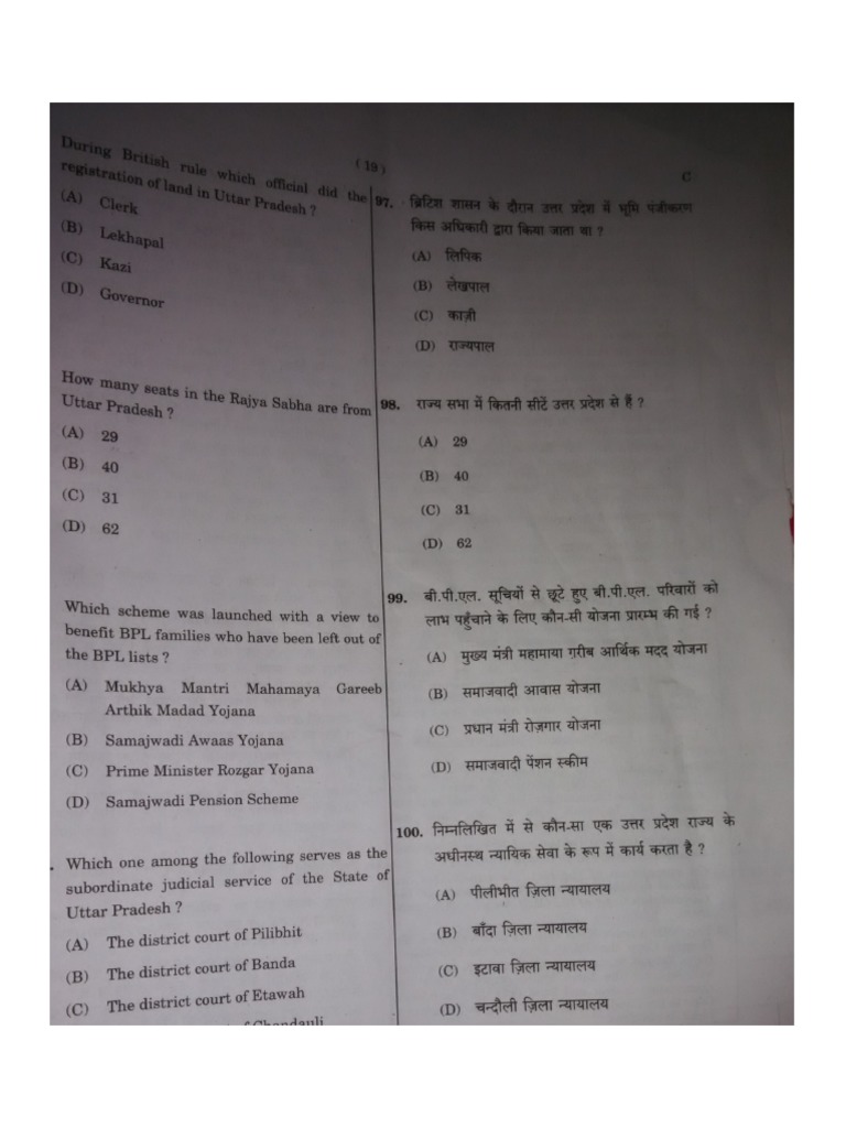 Up Lekhpal Question Paper 2018 With Answer Pdf