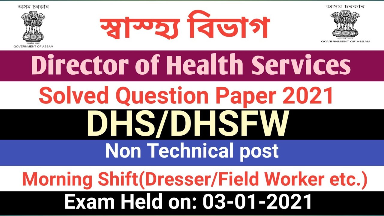 Answer Key Assam Dhs Dhsfw Question Paper 2021 For Non Technical L Exam Held On 03 01 2021 Youtube