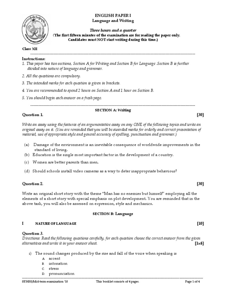 Paper I English Language And Writing Question Stress Linguistics