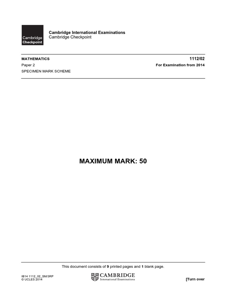 Maths Specimen Paper 2 Mark Scheme 2014 Pdf Geometry Teaching Mathematics